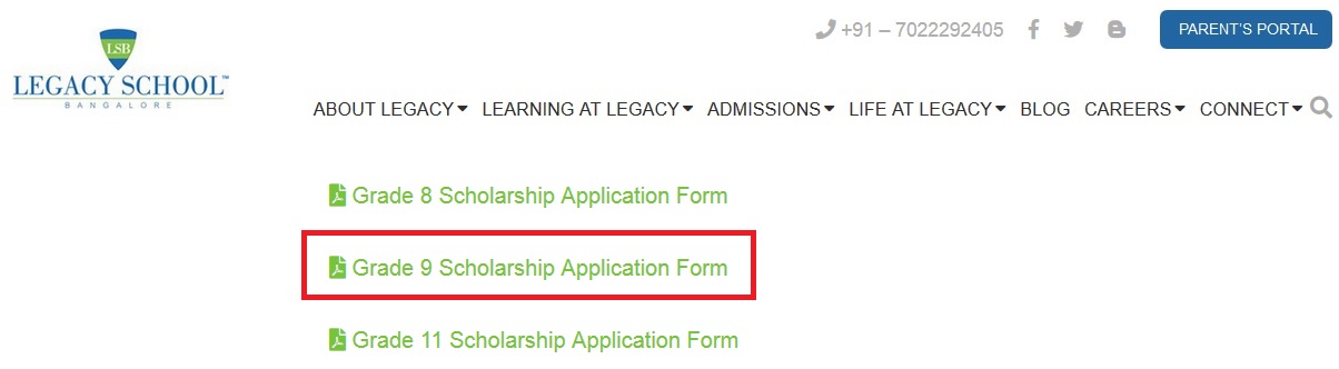 LSB Grade 9 Merit Scholarship Application 2019-20 : Legacy School Bangalore