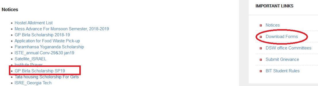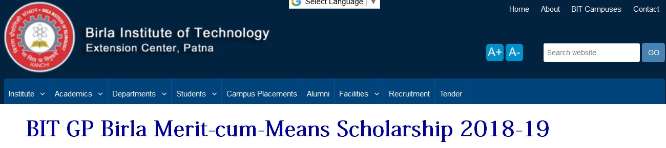 Scholarship Name : BIT GP Birla Merit-cum-Means Scholarship 2019