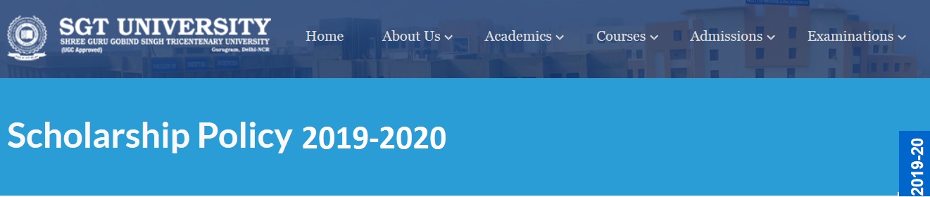 SGT University Scholarship Policy 2019-20 : sgtuniversity.ac.in