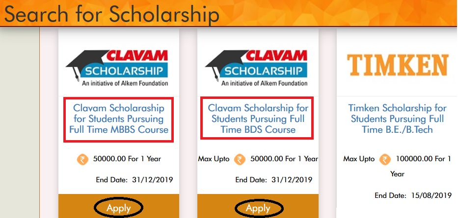 Search for relevant ‘Clavam Scholarship’ schemes in which you are eligible and apply for scholarship.
