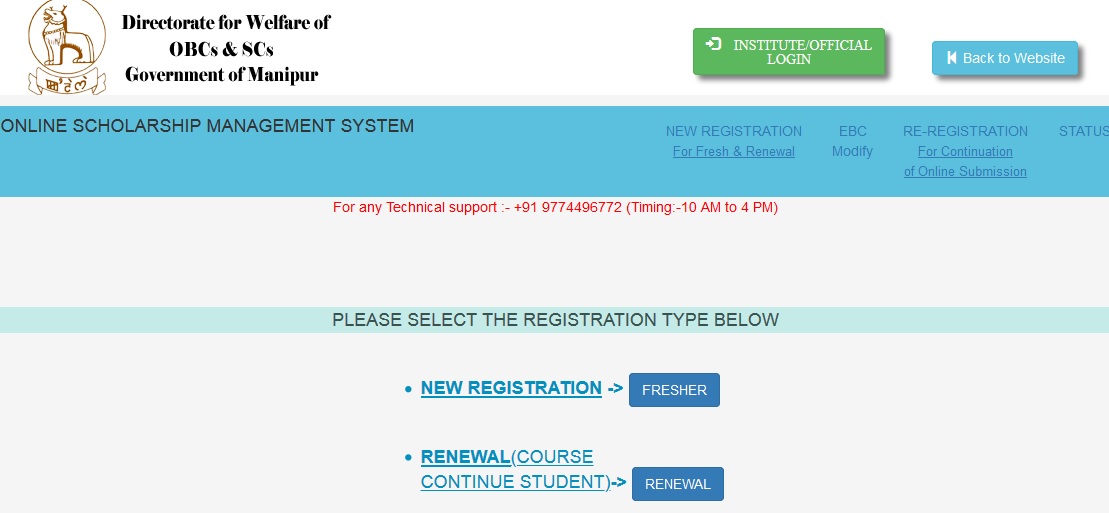 manipurobcsc.gov.in OSMS OBC, SC & EBC Pre-Matric/ Post-Matric 2019-20 : Manipur Online Scholarship Management System