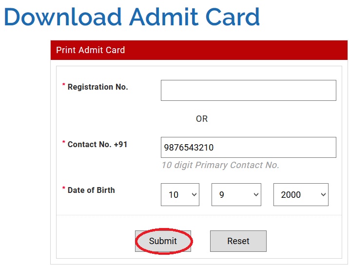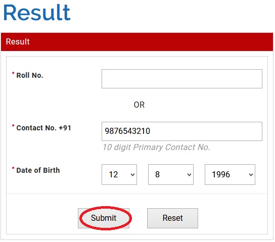 Step 2 : Enter Your Roll No. OR Contact No. +91
