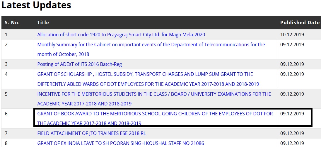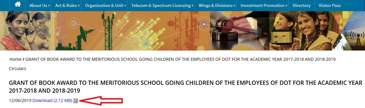 Website : http://dot.gov.in/circulars/grant-book-award-meritorious-school-going-children-employees-dot-academic-year-2017-2018