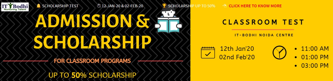IT Bodhi is pleased to announce Coding Scholarship & Admission Test (CSAT) for all meritorious students. All students appearing for CSAT can grab up to 50% scholarships on Advance & Foundation Coding classroom courses.