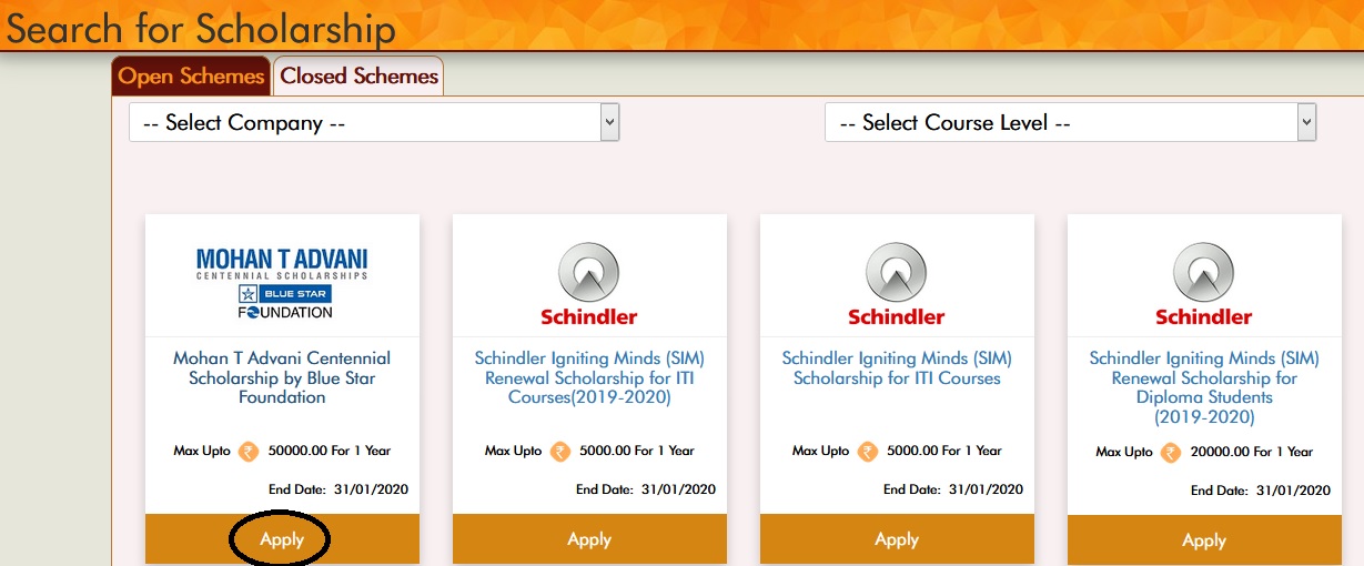 3. Search & Apply : Search for relevant schemes in which you are eligible and apply for scholarship