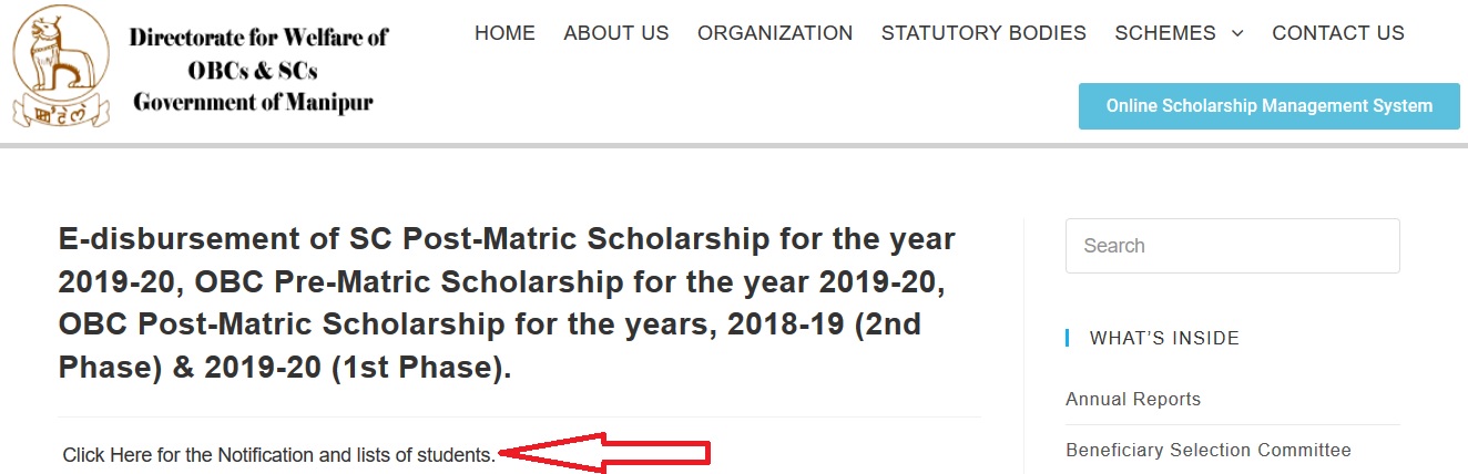 MOBC Manipur Scholarship 2019-20 e-Disbursement : manipurobcsc.gov.in