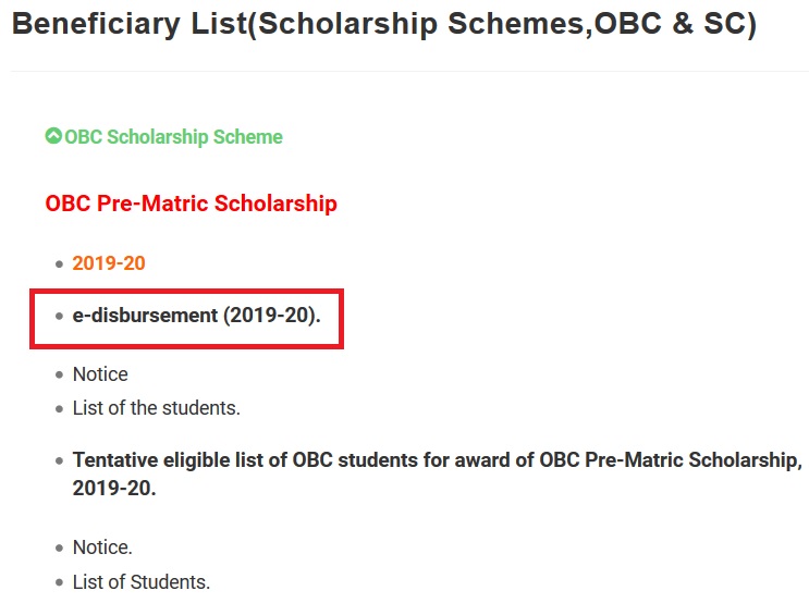 E-disbursement of SC Post-Matric Scholarship for the year 2019-20, OBC Pre-Matric Scholarship for the year 2019-20, OBC Post-Matric Scholarship for the years, 2018-19 (2nd Phase) & 2019-20 (1st Phase).