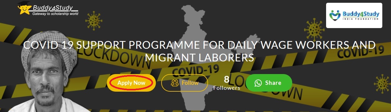 Website : https://www.buddy4study.com/page/covid-19-support-programme-for-daily-wage-workers-and-migrant-laborers