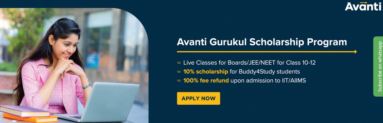 Under Avanti Gurukul Scholarship Program, the students currently studying in Class 10, 11 and 12 can not only avail a 10% discount on Avanti course fee but also an opportunity to get 100% refund of course fees in case they get selected to any of the Indian Institutes of Technology (IITs) or All India Institutes of Medical Sciences (AIIMS).