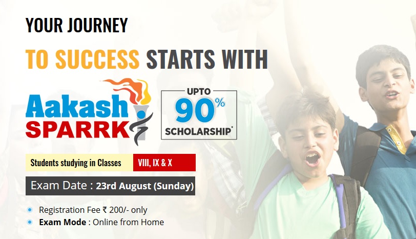 Aakash SPARRK is a national level scholarship exam. It gives students an opportunity to compete nationally and win Scholarship up to 90% on Tuition Fee and get admission into Aakash, India’s trusted name in coaching that provides comprehensive test preparatory services for students preparing for School/Board exam, Competitive/Scholarship exams such as NTSE, KVPY, Olympiads and Medical & Engineering entrance examinations.