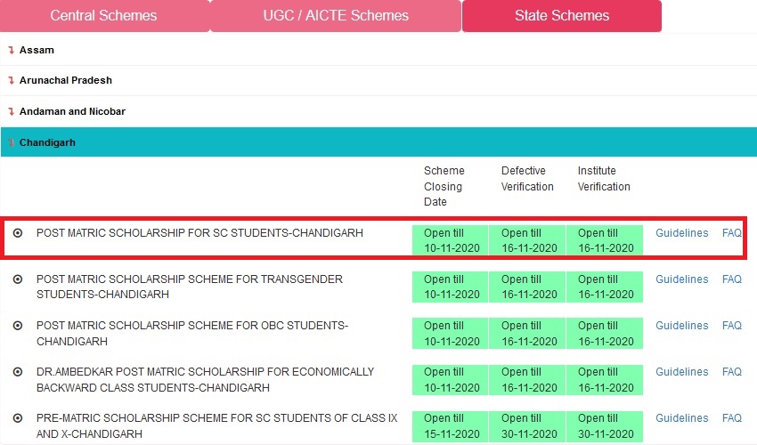 Just follow the below steps to apply for the Chandigarh Post Matric Scholarship Scheme For SC Students 2020-21.