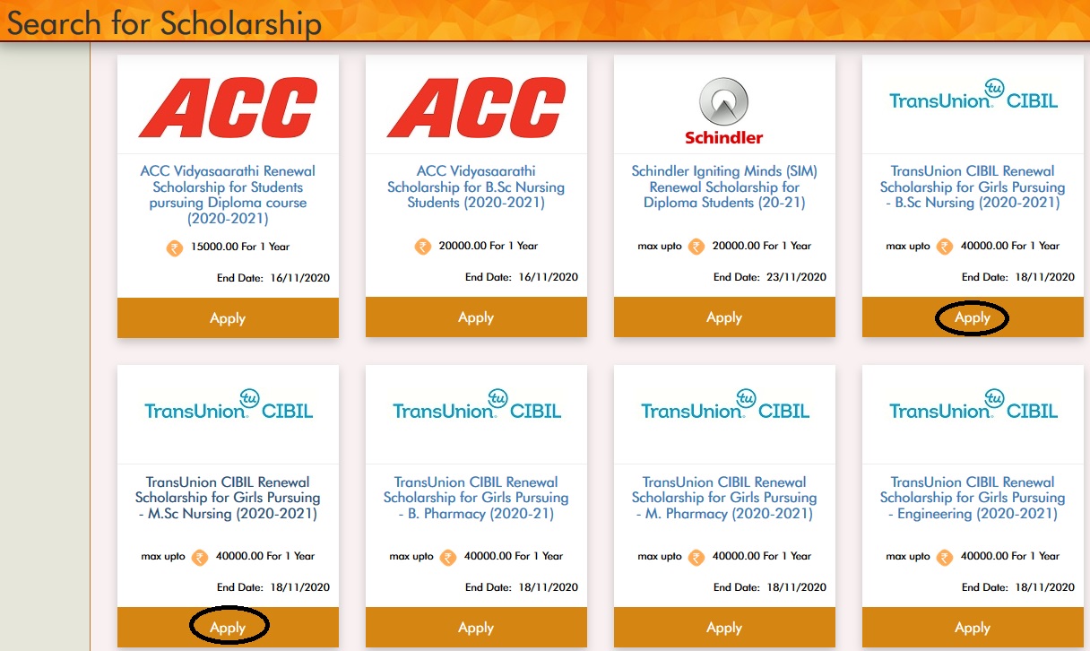 Search for relevant ‘TransUnion CIBIL Scholarship Renewal For B.Sc/M.Sc Nursing Students’ schemes in which you are eligible and apply for scholarship.