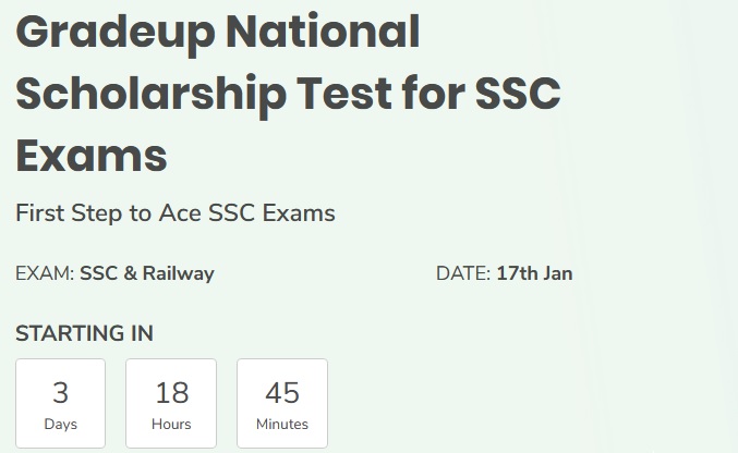 Students can attempt Gradeup National Scholarship Test for SSC in one of the 3 slots as per their convenience on 17th January 2021.