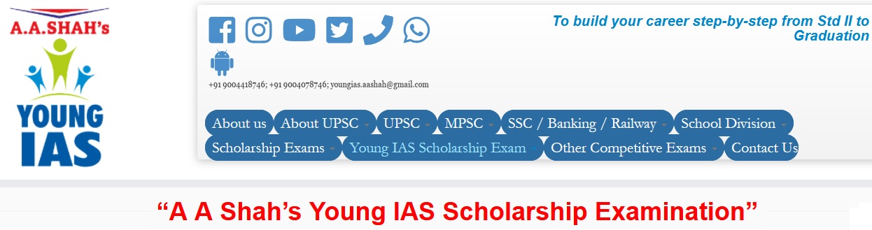A. A. Shah’s Young IAS Scholarship Examination is aimed to identify and nurture the talent of a student at the early age by giving positive push to the students towards their excellence. Emphasis is laid on overall development of personality of the student.