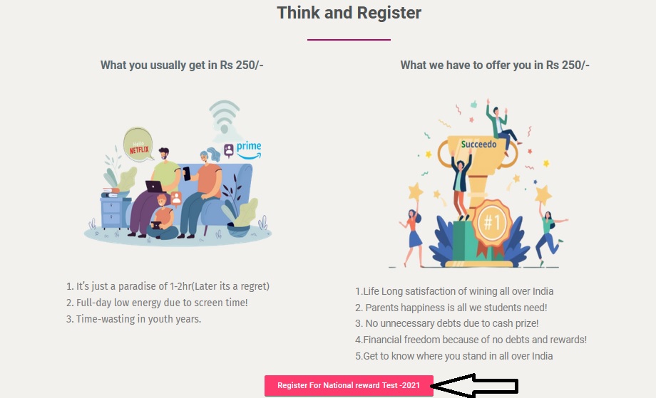 To apply for national reward test conducted by succeedo you need to click on Apply Now anywhere on the website it will redirect you to registration and you can apply and make your parents proud!
