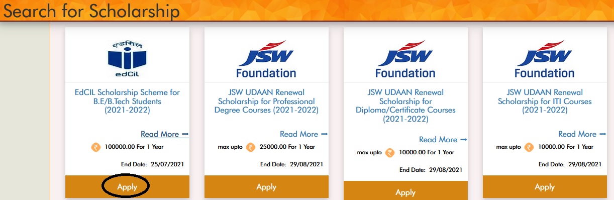 Search for relevant ‘EdCIL Scholarship’ schemes in which you are eligible and apply for scholarship.