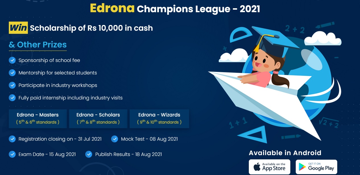 Edrona Champions League – 2021 Win Scholarship of Rs 10,000 in cash