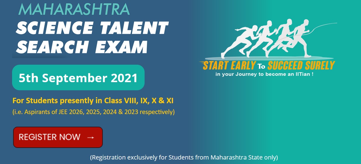 FIITJEE invites online applications for MSTSE Maharashtra Science Talent Search Exam for the year 2021. Based on their performance in MSTSE, Students will get to know their Rank Potential Index (RPI) for JEE Advanced.