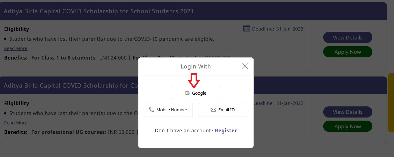 To Apply for Aditya Birla Capital COVID Scholarship for College (UG) Students, just follow the below steps