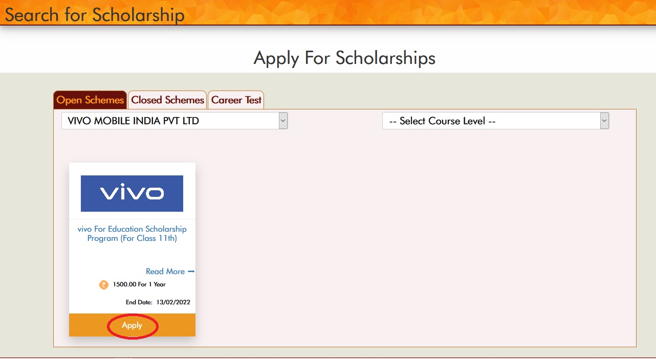 Scholarship Name : Vivo For Education Scholarship Program (For Class 11th) 2021-22
