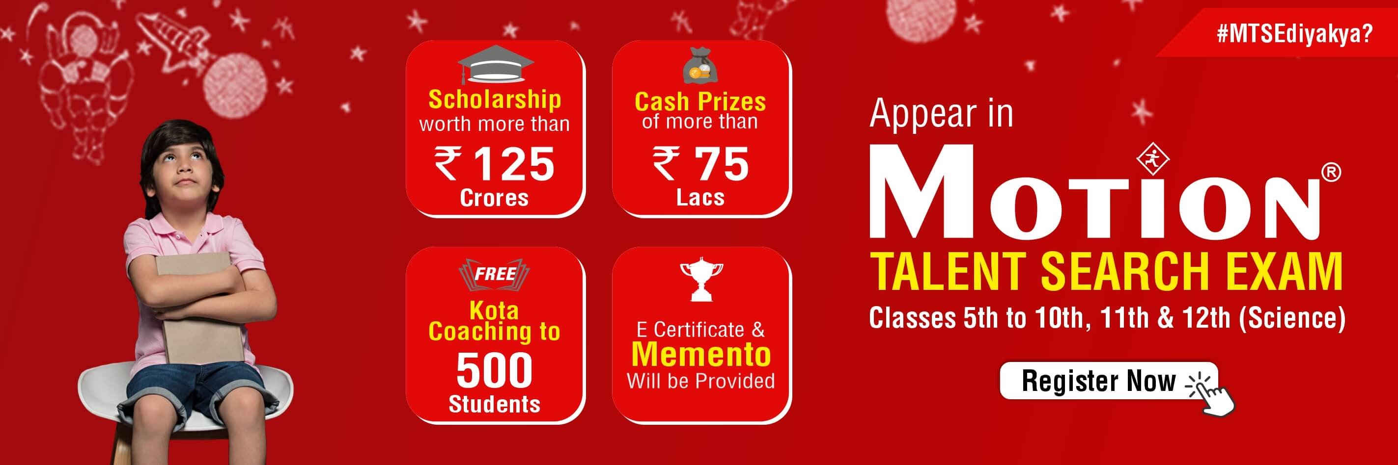 Motion Talent Search Exam 2024 MTSE is sponsored by Motion Education Pvt. Ltd. MTSE is a specially designed initiative to encourage young talent with cash prizes, scholarships, and Momento. Student Studying in Classes 5th to 10th, 11th(Science) & 12th(Science) can apply for this exam. Motion Talent Search Exam helps students nourish their minds by preparing them to excel in the field of Engineering and Pre-medical Entrance Test Examinations by studying at Motion Institute. The goal of MTSE is to bring together the nation’s young talent on a single platform and help them realize their full potential via careful assessment, practice, and counseling. Last Date of scholarship test is 30th November, 2023.