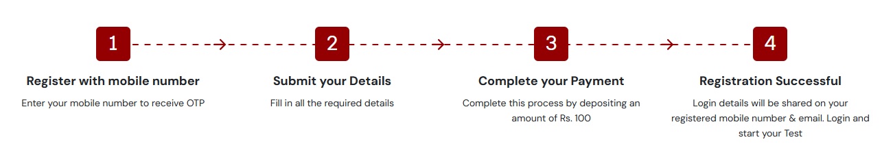 The registration fee is Rs.100/- (non-refundable). After making the payment, the student will receive a confirmation message on the registered mobile number, and the mail also.