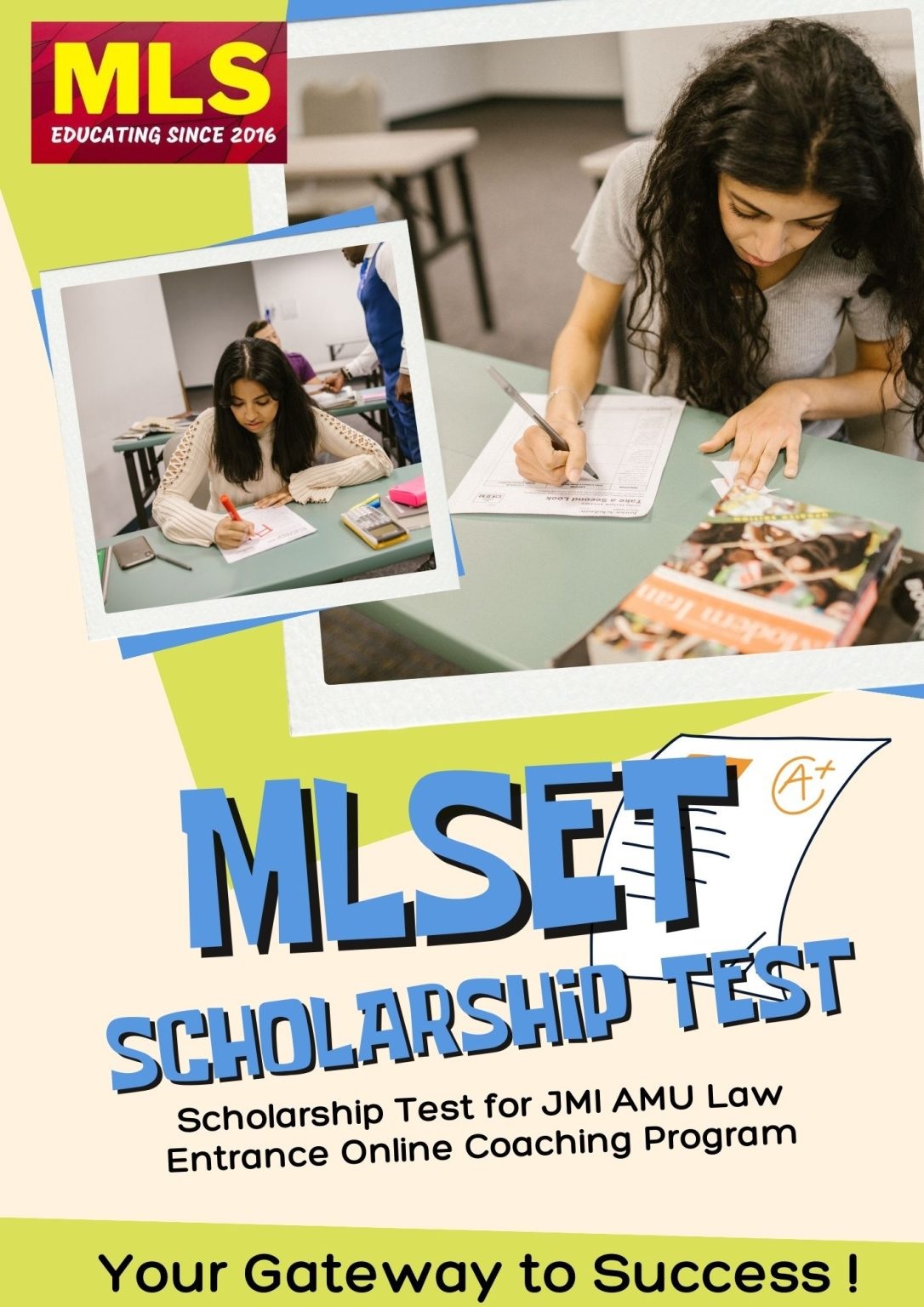 MLSET 2024 MLS Scholarship Entrance Test is sponsored by My Learning Support MLS. MLSET 2024 Scholarship Test for preparation of BA.LLB. Entrance Exam OF CUET/JMI/AMU. Our Scholarship Test in offline mode for the prestigious JMI AMU Law Entrance Exam Online coaching program. This scholarship test aims to identify and support passionate, dedicated, and deserving students aspiring to excel in the field of law at Jamia Millia Islamia and Aligarh Muslim University. Last Date Of Registration is 31st December 2023.
