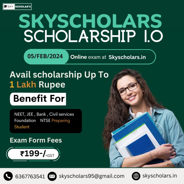 Skyscholars National Scholarship Test is India’s Largest Online Scholarship Test For Student. Every year many students want to study in good institutions but are not able to study due to lack of money, that is why skyscholars has brought a scholarship exam which fulfills your every dream and takes your career to a good level. Get Scholarship Up to Rs 1 Lakh. The fee for all candidates in SNST exam is only Rs 199.