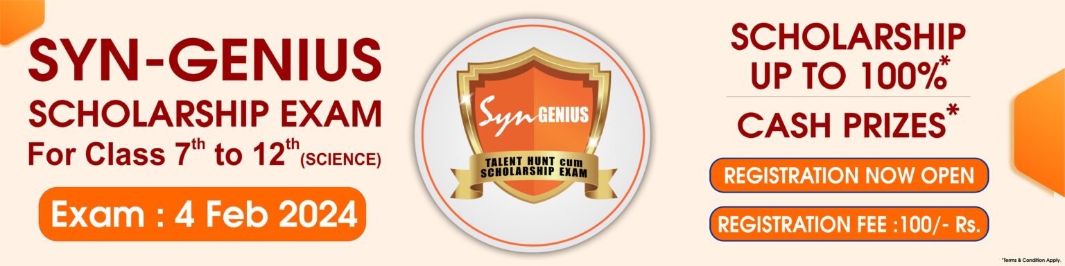 SYN-Genius Scholarship Exam 2024 is sponsored by Synthesis Group of Education. It’s a talent hunt and scholarship exam conducted by Synthesis, an institute offering NEET and JEE coaching in India. Any student who is pursuing 7th class to 12th (Science) is eligible for taking the SYN-Genius scholarship Exam. Registration Fees is Rs.100/-. Date of Examination is 04th February 2024.