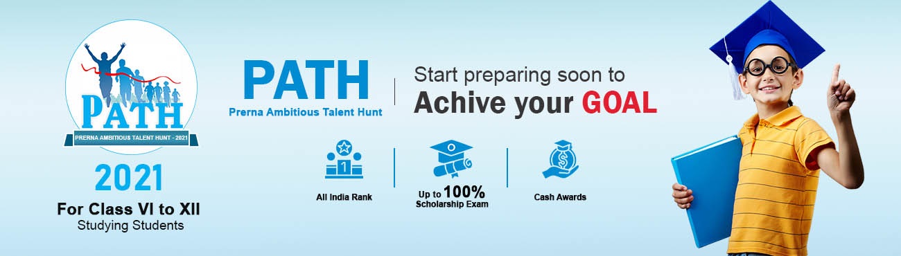 Prerna Education is conducting Prerna Ambitious Talent Hunt Exam (PATH) for class 7th, 8th, 9th, 10th, 11th & 12th studying students. PATH is the first step towards career milestone where students get upto 100% scholarship worth of Rs.90 lacs on the basis of their performance in examination and Top Scorer students will be rewarded with Cash Prizes of upto Rs.30 lacs. PATH will be conducted in both Online & Offline Mode.