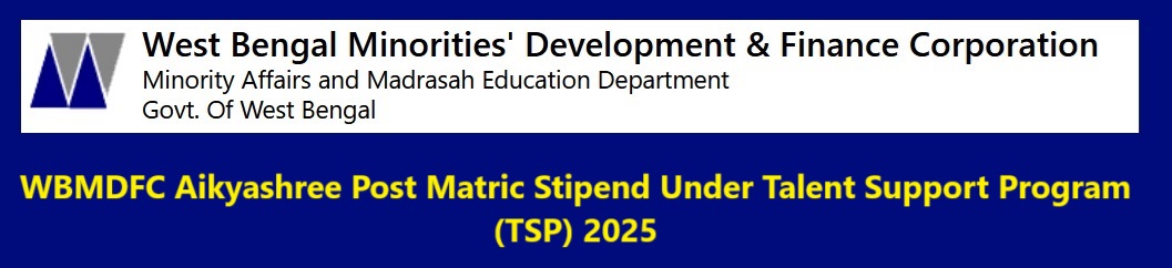 WBMDFC Aikyashree Post Matric Stipend Under Talent Support Program (TSP) 2025 : wbmdfcscholarship.in