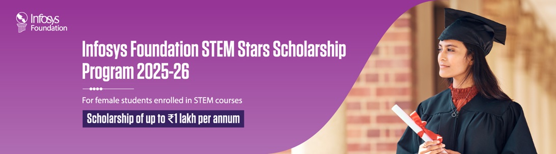 The Infosys Foundation launched the Infosys Foundation STEM Stars Scholarship Program 2025–26 to help female students who want to pursue an undergraduate course in STEM (Science, Technology, Engineering, and Mathematics). For the duration of the STEM course, the scholarship offers full financial support of up to ₹1,00,000. This covers living expenses, tuition, and the price of study materials. Last date of application is 15th September 2025.