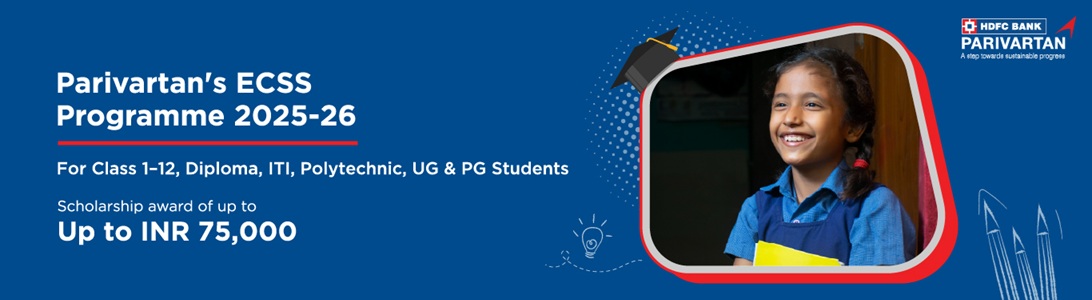 Parivartan ECSS Scholarship For School Students 2025-26 is an initiative funded by HDFC Bank aimed at supporting meritorious and financially needy students from underprivileged backgrounds. The scholarship programme is open to school students from Classes 1 to 12, as well as those pursuing diploma, ITI, polytechnic, UG, and PG (both general and professional) courses. Last date of application is 30th October 2025.