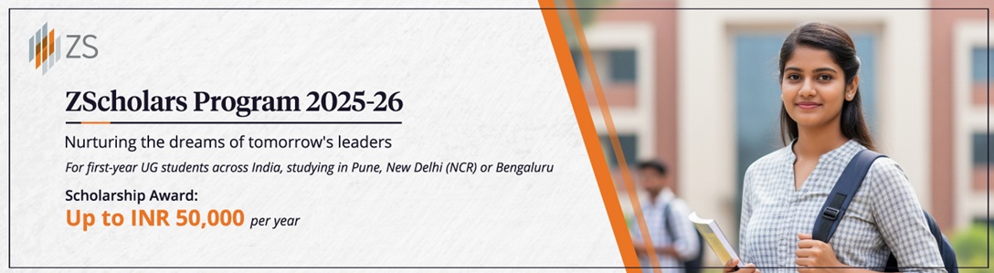 The ZScholars Program 2025-26 is an initiative launched by ZS Associates India Pvt. Ltd. It aims to empower talented students from underprivileged backgrounds by offering financial assistance to pursue higher education. This scholarship is available to students enrolled in general or professional undergraduate courses across a wide range of streams at institutions in Pune, New Delhi (NCR) or Bengaluru. Selected students will receive a scholarship of up to INR 50,000 annually to support their academic journey and ease their financial burden. Last date of scholarship is 28th November 2025.