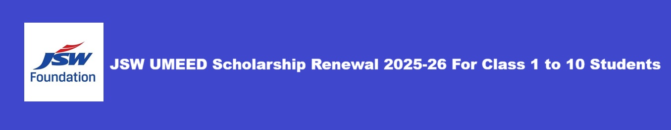 JSW UMEED Scholarship Renewal 2025-26 For Class 1 to 10 Students