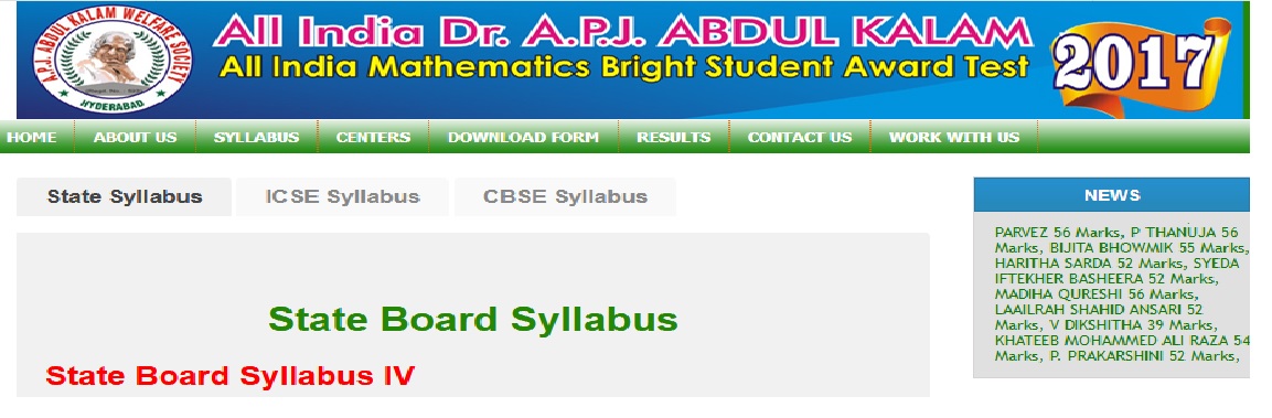 APJEDU Syllabus APJ Abdul Kalam Bright Student Award Test 2016