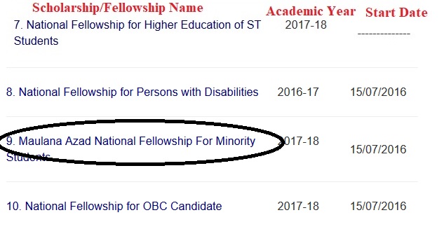 Scholarship Name : Maulana Azad National Fellowship For Minority Students 2017-18