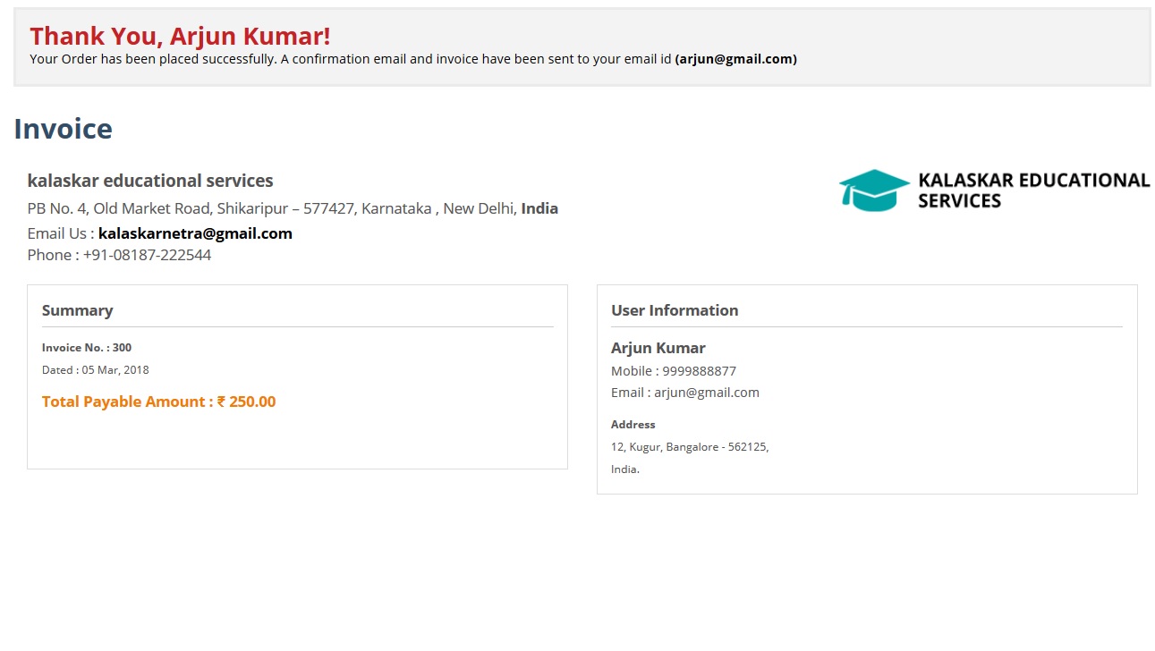 After Successful payment you will receive the Message as follows,